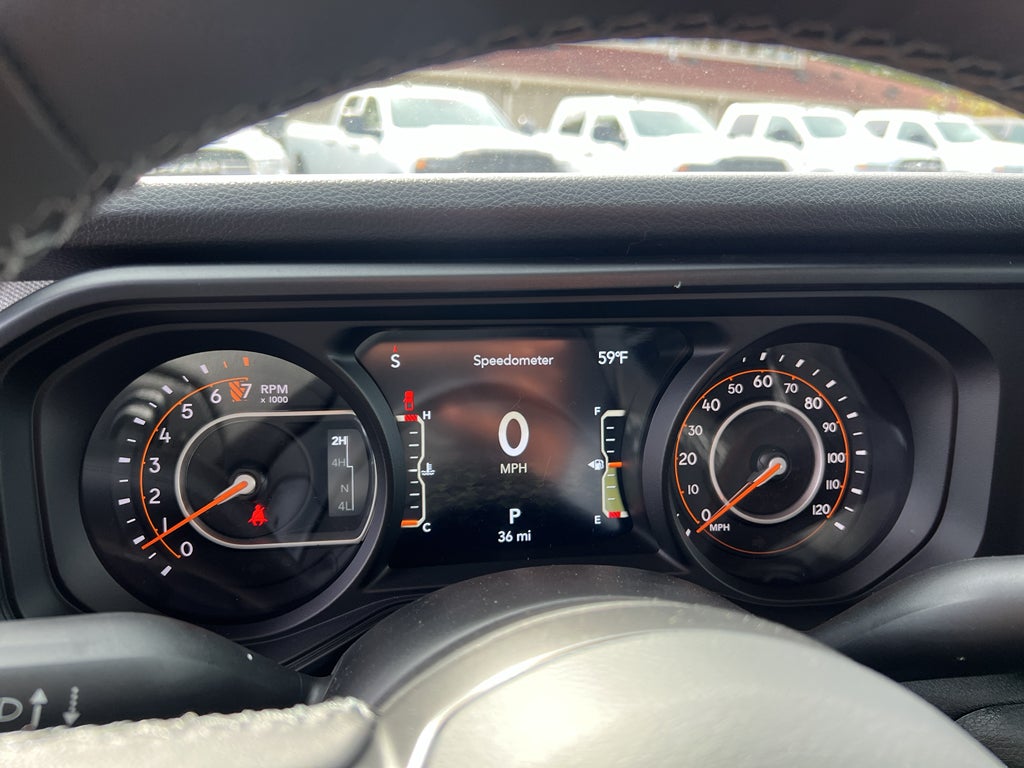 Dark Sky Appearance Package: Mold in Color Bumper with Gloss Black; 2-Piece Body Color Fender Flares; Daytime Running Lamp System; Performance Hood. Convenience Group: Emergency/assistance Call; Front Door Locks 2-Door Passive Entry; 2-Piece Body Color Fender Flares; Remote Start System; Cluster 7.0" TFT Color Display; Universal Garage Door Opener; Daytime Running Lamp System; Heated Front Seats; Air Conditioning with Auto Temp Control; Heated Steering Wheel; Corning Gorilla Glass. Quick Order Package 24S Sport S: Advanced Brake Assist; 17" X 7.5" Gray Wheels; Power Heated Mirrors; Enhanced Adaptive Cruise Control; Automatic Headlamps; Normal Duty Plus Suspension; Deep Tint Sunscreen Windows; Premium Wrapped Steering Wheel; Security Alarm; Sun Visors with Illuminated Vanity Mirrors; Full Speed Forward Collision Warning Plus. Black 3-Piece Hard Top. Anvil Clearcoat. MOPAR Spray in Bedliner. MOPAR All-Weather Slush Mats. **Equipment listed is based on original vehicle build and subject to change. Please confirm the accuracy of the included equipment by calling the dealer prior to purchase.**