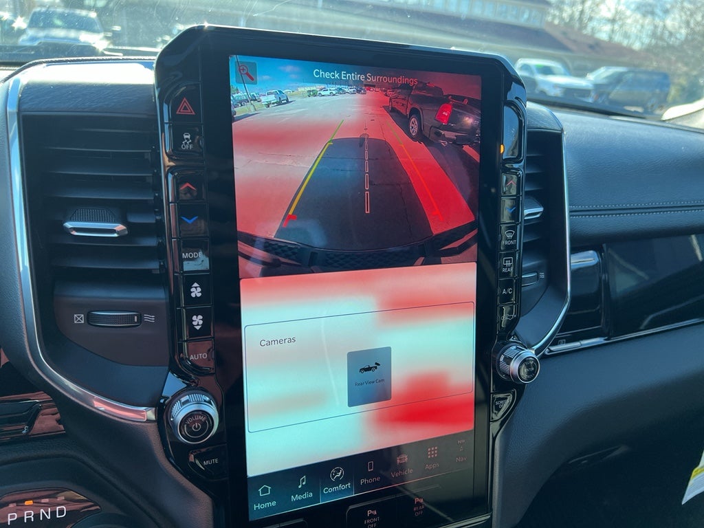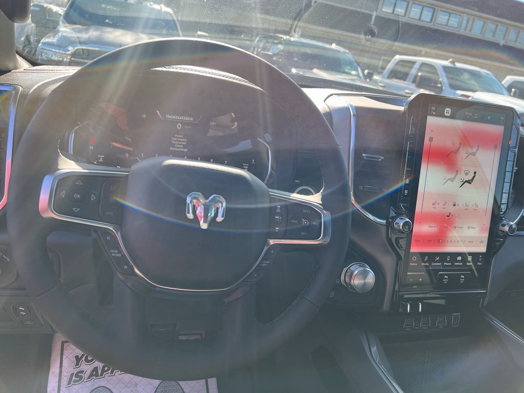 Quick Order Package 27H Laramie. Laramie Level 2 Equipment Group: SiriusXM Radio Service; USB Host Flip; Rain Sensitive Windshield Wipers; 14.4" Touchscreen Display; Integrated Center Stack Radio; Front Passenger Interactive Display; Integrated Voice Command with Bluetooth®; Connectivity - US/Canada; Uconnect 5 Nav with 14.4" Display; GPS Navigation; 4G LTE Wi-Fi Hot Spot; Harman/kardon 19 Speaker Premium Sound; SiriusXM with 360L; Connected Travel and Traffic Services; Cluster 12" TFT Color Display; Power Tailgate. Night Edition: Black Headlamp Bezels; Auto Power-Folding Mirrors; 22" X 9" Forged Aluminum Wheels; Exterior Mirrors with Heating Element; Proximity Approach/departure Lamps; Auto Dim Exterior Driver Mirror; Anti-Spin Differential Rear Axle; Accent Color Door Handles; Black Interior Accents; Body Color Front Bumper; Grille Surround 3 Black Texture 2 Black; Body Color Rear Bumper with Step Pads; RAM Grille Badge - Black; Black Painted Exterior Mirrors Caps; Exterior Mirrors Approach Lamps; Accent Color Premium Power Mirrors; Exterior Mirrors with Supplemental Signals; Sport Performance Hood; Exterior Mirrors Courtesy Lamps; Black Exterior Truck Badging; Accent Color Tailgate Handle; Exterior Mirrors with Memory; Dual Exhaust with Black Tips; Convex Wide-Angle Exterior Mirror Insert; Black Tail Lamp Bezels. Bed Utility Group: MOPAR Spray in Bedliner; MOPAR Deployable Bed Step; MOPAR 4 Adjustable Cargo Tie-Down Hooks; Exterior 115V AC Outlet. 22" X 9" Forged Aluminum Wheels. Dual-Pane Panoramic Sunroof. Power Deployable Running Boards. Anti-Spin Differential Rear Axle. 33 Gallon Fuel Tank. Trailer Brake Control. Diamond Black Crystal PC. MOPAR Front and Rear Rubber Floor Mats. 3.92 Rear Axle Ratio. **Equipment listed is based on original vehicle build and subject to change. Please confirm the accuracy of the included equipment by calling the dealer prior to purchase.**