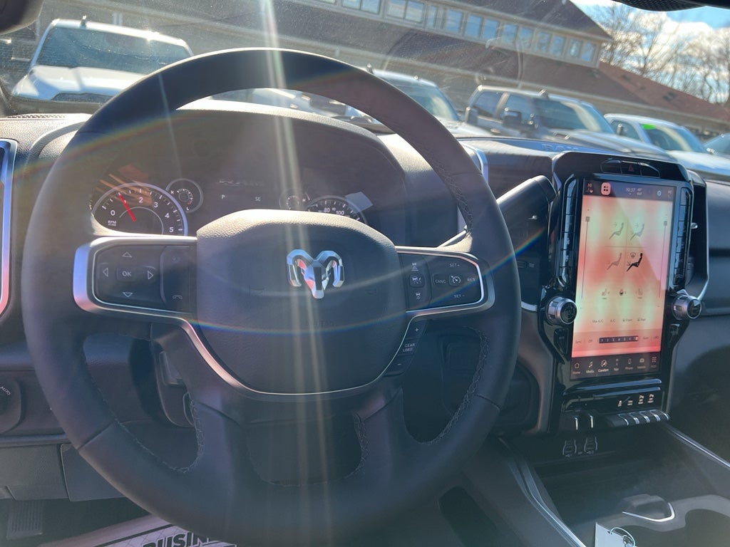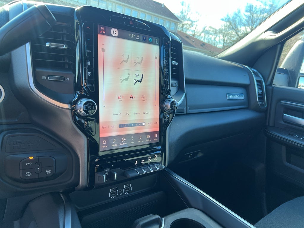 Quick Order Package 2UZ Big Horn. Big Horn Level 1 Plus Equipment Group: Google Android Auto; SiriusXM Radio Service; For Details. Visit DriveUconnect.com; For More Info. Call 800-643-2112; Integrated Voice Command with Bluetooth®; Emergency Vehicle Alert System (EVAS); 12" Touchscreen Display; Glove Box Lamp; Auto Power-Folding Mirrors; Footwell Courtesy Lamp; Anti-Spin Differential Rear Axle; Mirror Running Lights; MOPAR Deployable Bed Step; Alexa Built-In; Apple CarPlay; Power-Adjustable Convex Aux Mirrors; Forward and Reverse Utility Lights; Locking Lower Glove Box; Remote Start System; 9 Alpine Speakers with Subwoofer; Disassociated Touchscreen Display; Dual Glove Boxes; 2nd Row in Floor Storage Bins; Rear View Auto Dim Mirror; Rear Dome with On/off Switch Lamp; LED Bed Lighting; Connectivity - US/Canada; GPS Navigation; 4G LTE Wi-Fi Hot Spot; GPS Antenna Input; Exterior Mirrors with Heating Element; SiriusXM with 360L; Global Telematics Box Module; Connected Travel and Traffic Services; Foam Bottle Insert (door Trim Panel); Black Exterior Mirrors; Big Horn Instrument Panel Badge; Off-Road Info Pages; Selectable Tire Fill Alert; Trailer Tow Pages; HD Radio; Uconnect 5 Navigation with 12.0" Display Radio; Power Heated Folding Telescopic Mirrors; Exterior Mirrors with Supplemental Signals; Steering Wheel Mounted Audio Controls; Exterior Mirrors Courtesy Lamps; Air Conditioning ATC with Dual Zone Control; MOPAR Spray in Bedliner; Power Adjust Mirrors; Luxury Steering Wheel; Power Telescoping Mirrors. Heated Seats and Wheel Group: Heated Front Seats; Heated Steering Wheel. Chrome Flat Wheel-To-wheel Side Steps. Anti-Spin Differential Rear Axle. Premium Cloth Bucket Seats. Remote Start System. Granite Crystal Met CC. MOPAR Front and Rear Rubber Floor Mats. MyFlexCare Service Plan. Power 2-Way Driver Lumbar Adjust. **Equipment listed is based on original vehicle build and subject to change. Please confirm the accuracy of the included equipment by calling the dealer prior to purchase.**