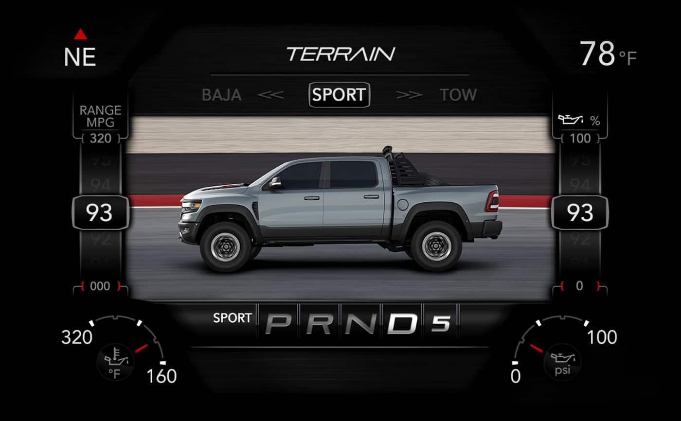 From an exclusive switch bank, TRX adapts at your command with nine performance-tuned drive modes for on- and off-road excursions.