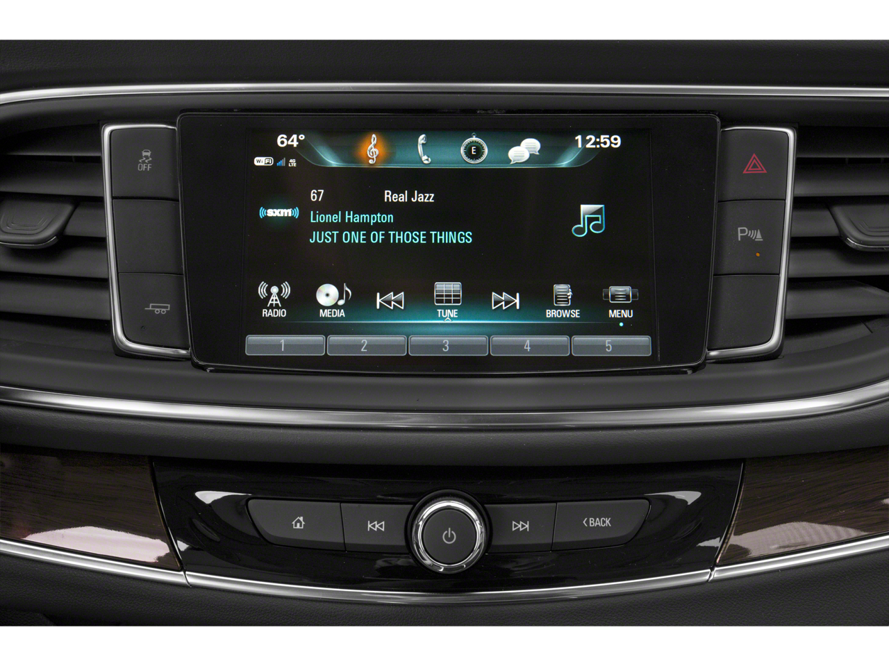- Audio system, Buick Infotainment System, AM/FM stereo, SiriusXM, with 8" diagonal Color Touch Screen includes 2 USB ports inside center console, Bluetooth® streaming for audio and select phones and Phone Integration for Apple CarPlay and Android Auto capability for compatible phone