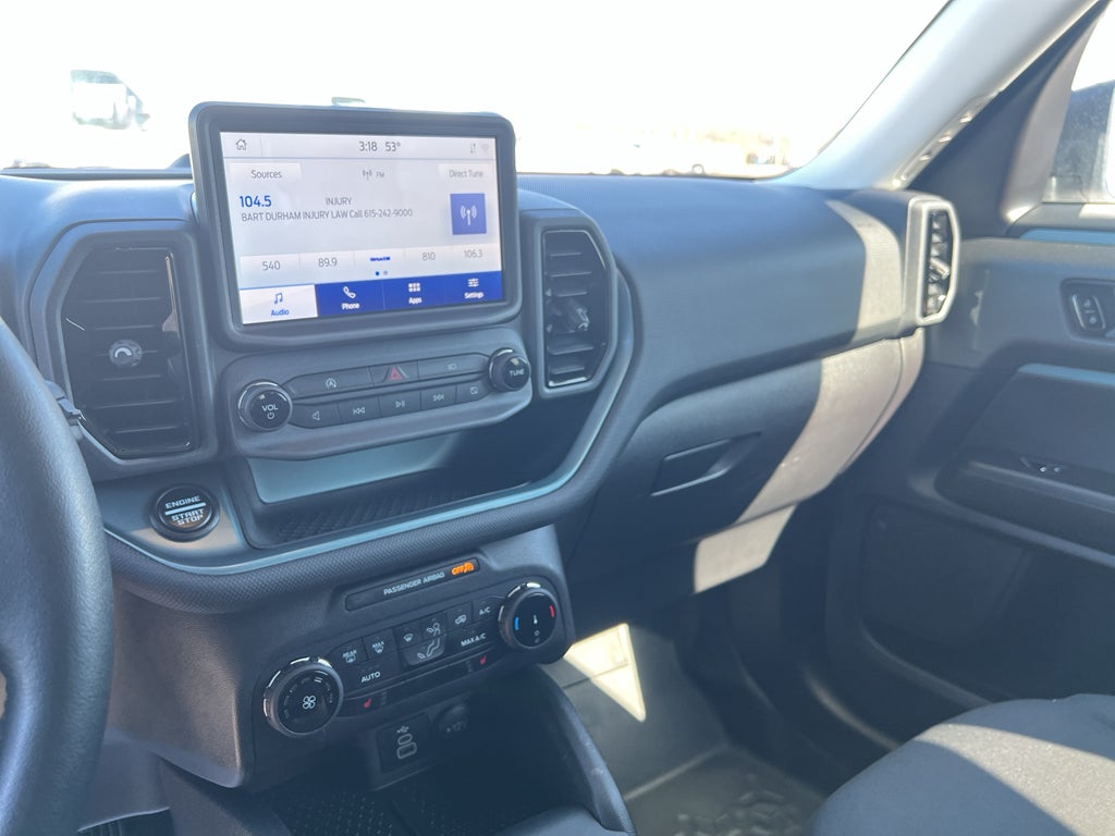 This unit offers Android Auto for seamless smartphone integration. Our dealership has already run the CARFAX report and it is clean. A clean CARFAX is a great asset for resale value in the future. This vehicle is a certified CARFAX 1-owner. The Ford Bronco Sport offers Apple CarPlay for seamless connectivity. See what's behind you with the back up camera on this vehicle. This unit's Cross-Traffic Alert: Safeguarding you from unexpected traffic when reversing. An off-road package is equipped on the vehicle. This model offers Automatic Climate Control for personalized comfort. Bluetooth® technology is built into it, keeping your hands on the steering wheel and your focus on the road. This vehicle has a 4 Cyl, 2.0L high output engine. This Ford Bronco Sport has four wheel drive capabilities. It embodies class and sophistication with its refined white exterior. Set the temperature exactly where you are most comfortable in this Ford Bronco Sport. The fan speed and temperature will automatically adjust to maintain your preferred zone climate.