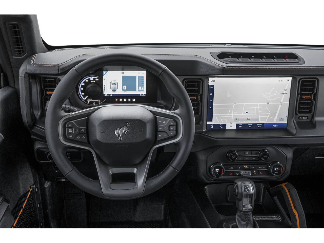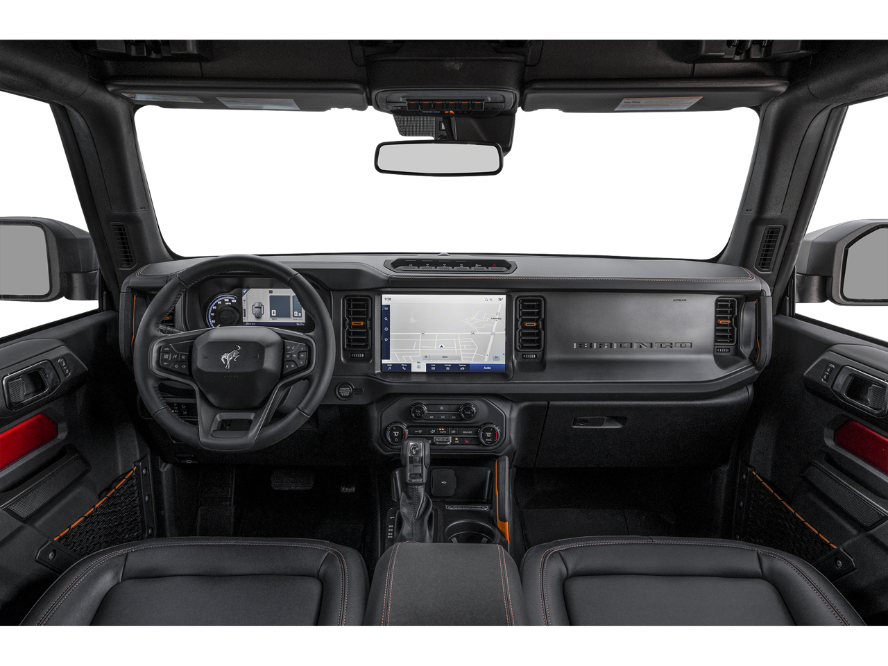 Equipment Group 332A Mid Package: 17" Machined Carbonized Aluminum Wheels; Rear Parking Sensors; Power Outlet - Back Side of Center Floor Console; Dual Smart Charging USB Ports; Front Row Heated Seats; Auto-Dimming Interior Rearview Mirror; Driver and Front Passenger Illuminated Sliding Visor Vanity Mirrors; AM/FM Stereo; Marine Grade Vinyl Bucket Seats; Dual-Zone Electronic Automatic Temperature Control; Connected Navigation; LT285/70R17 A/T Tires; Ambient Footwell Lighting; Remote Start System; 2-Door Intelligent Access with Lock/unlock. Sasquatch Package: High Clearance Fender Flares; High Clearance Suspension; Position-Sensitive Bilstein Shock Absorbers. Ford Co-Pilot360: Auto High-Beam Headlamps; Rear View Camera; Pre-Collision Assist with Automatic Emergency Braking; Blind Spot Information System (BLIS); Lane-Keeping System. Removable Hoop Step. Black Roof Rails with Crossbars. Cargo Area Protector. **Equipment listed is based on original vehicle build and subject to change. Please confirm the accuracy of the included equipment by calling the dealer prior to purchase.**