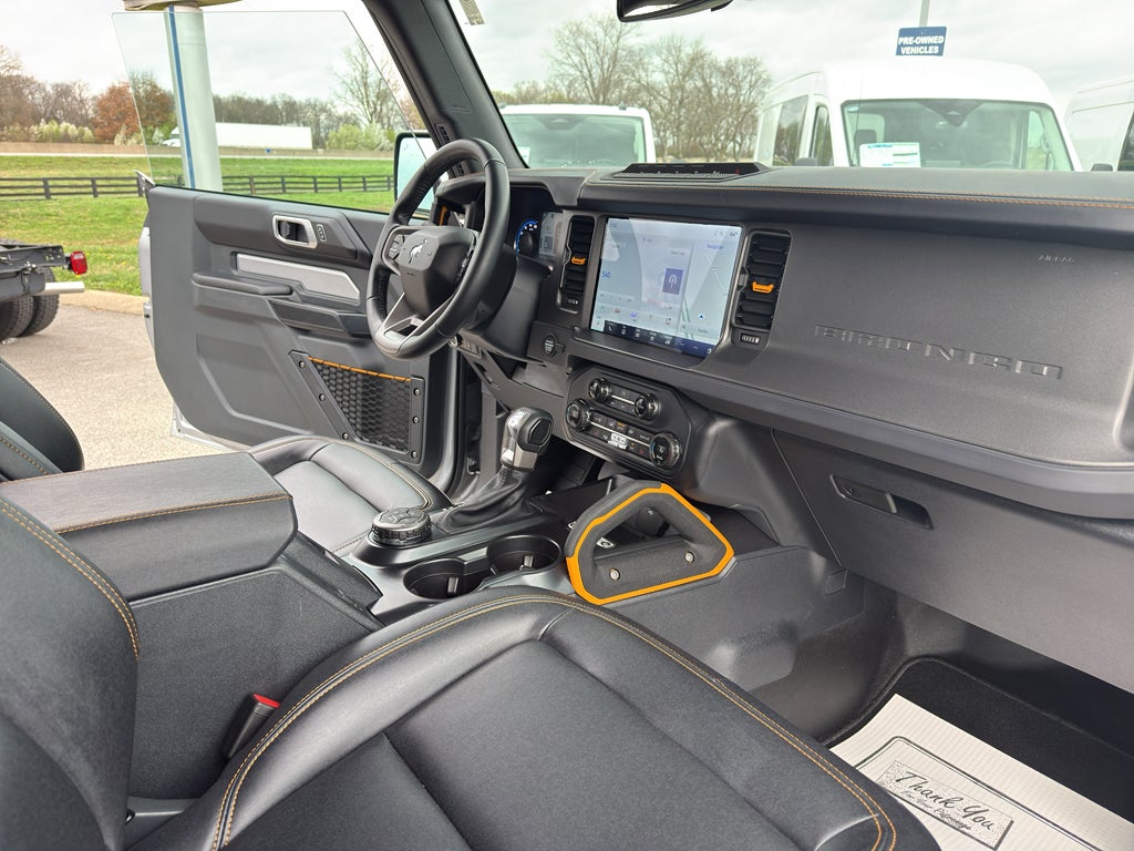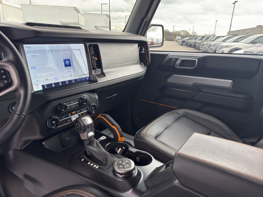 Heated seats for those cold winter days are included in this 2024 Ford Bronco . An off-road package is installed on this vehicle so you are ready for your four-wheeling best. It offers Android Auto for seamless smartphone integration. The installed navigation system will keep you on the right path. Protect this 1/2 ton suv from unwanted accidents with a cutting edge backup camera system. Start this 1/2 ton suv from inside with remote start. Bluetooth® technology is built into this vehicle, keeping your hands on the steering wheel and your focus on the road. The vehicle has a clean CARFAX vehicle history report. This model offers Automatic Climate Control for personalized comfort. This vehicle is a certified CARFAX 1-owner. This vehicle warns of approaching vehicles with Cross-Traffic Alert. Apple CarPlay: Seamless smartphone integration for this 1/2 ton suv - stay connected and entertained on the go! The state of the art park assist system will guide you easily into any spot.